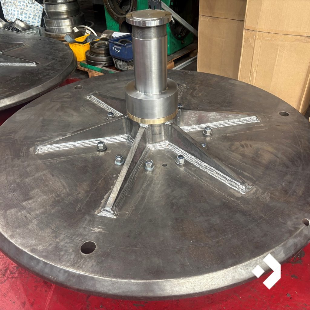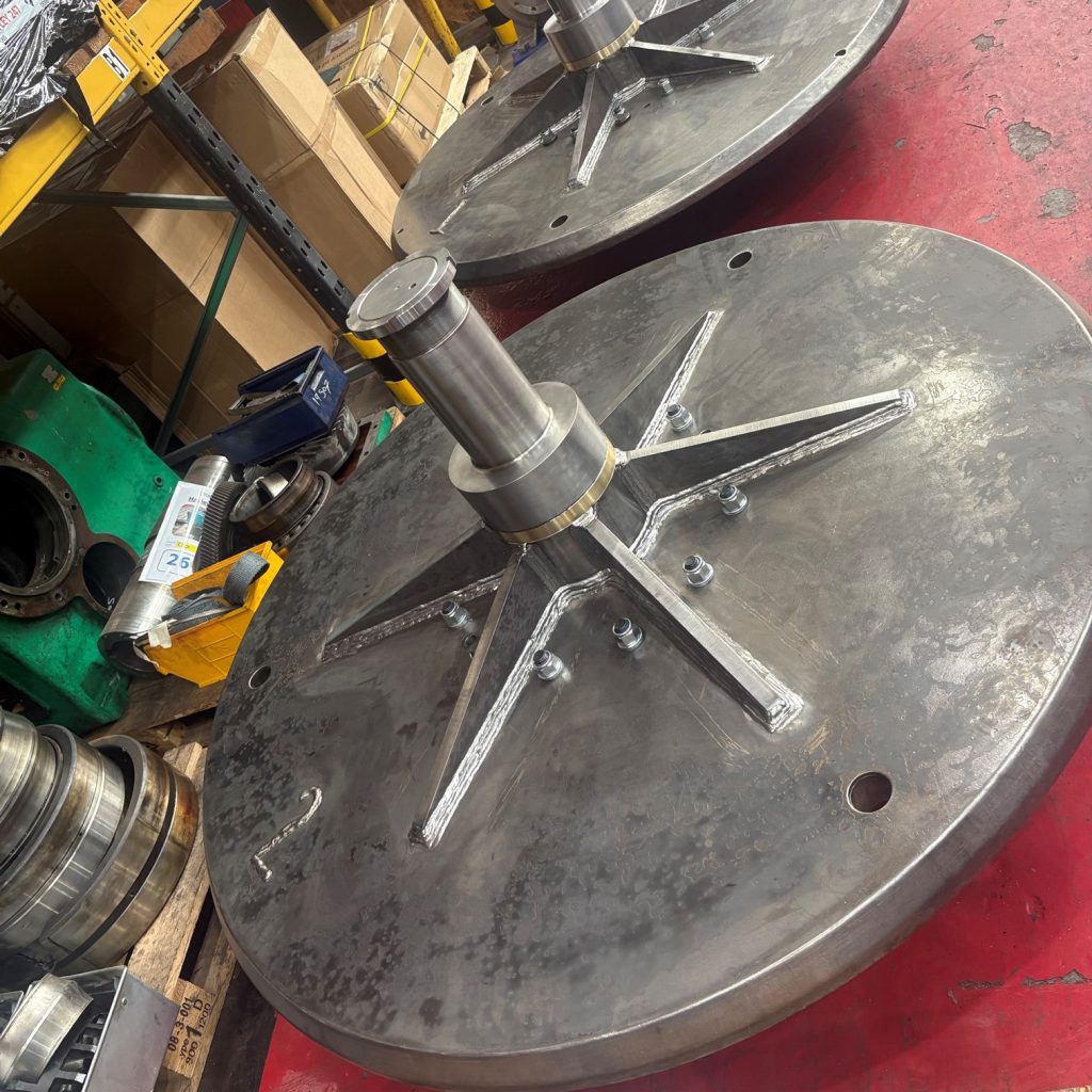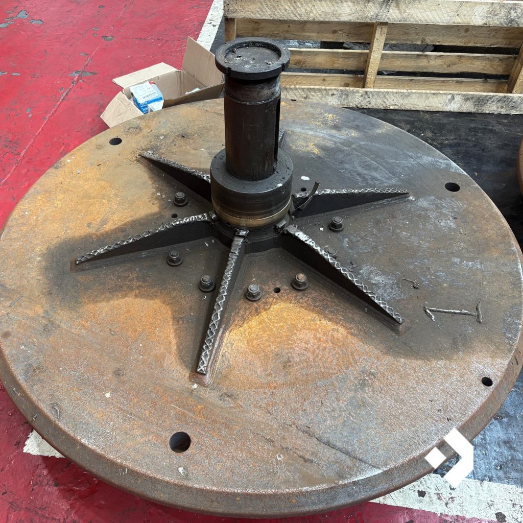 Two Cone Mounting Plate Assemblies, each measuring up to 2 metres in diameter and weighing around 3 tonnes, had suffered extensive wear. The hubs, ribs, and shafts were no longer serviceable, and the assemblies required a full refurbishment to return them to operational condition.